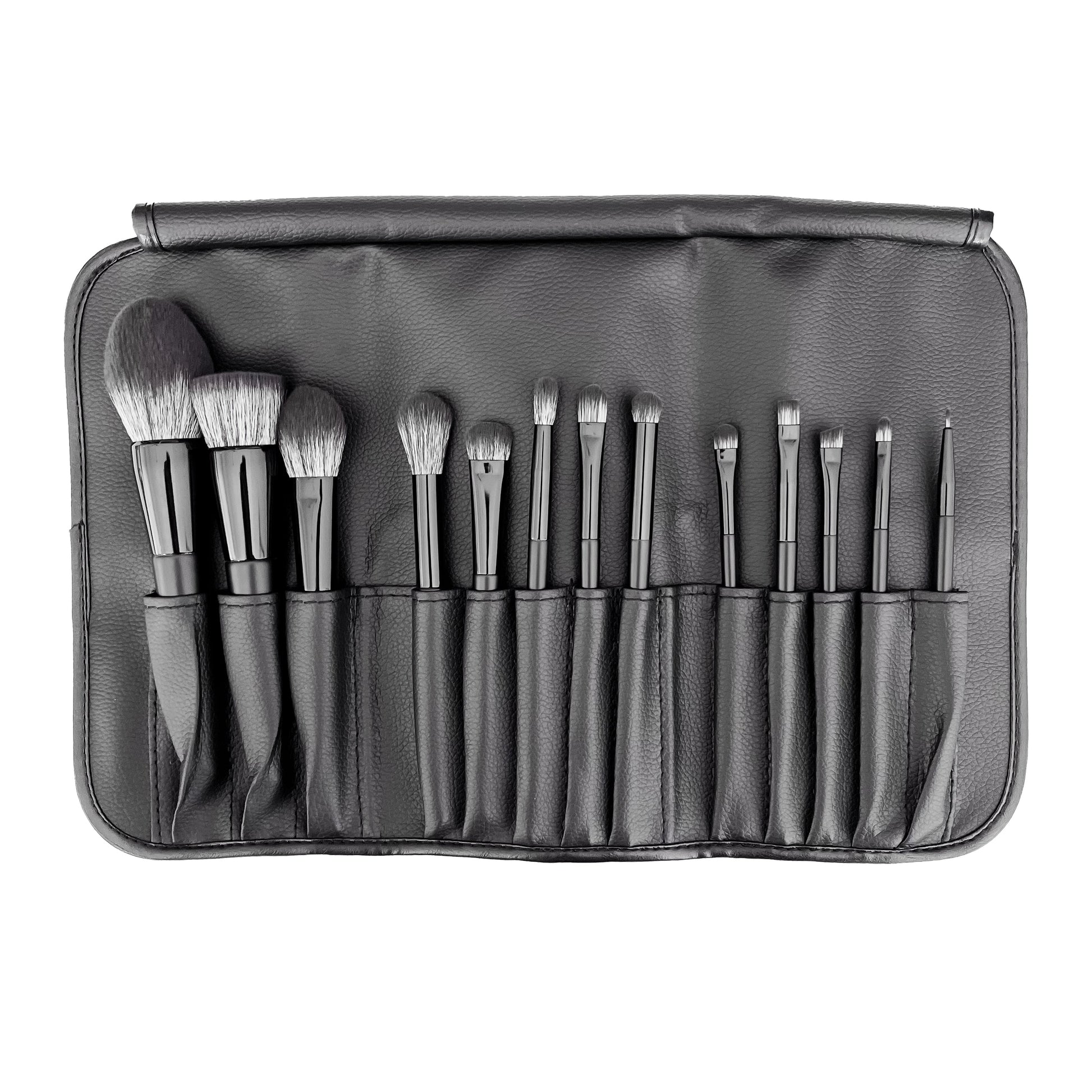 Our?vegan makeup brush set is a must-have for makeup beginners and experts.?Each set includes a faux-leather roll-up case and brushes for the face and eyes, making it versatile for a variety of looks and easy for travel.?Each brush is cruelty-free and crafted with soft synthetic fibers, making?it both reliable, gentle, and ideal for blending.